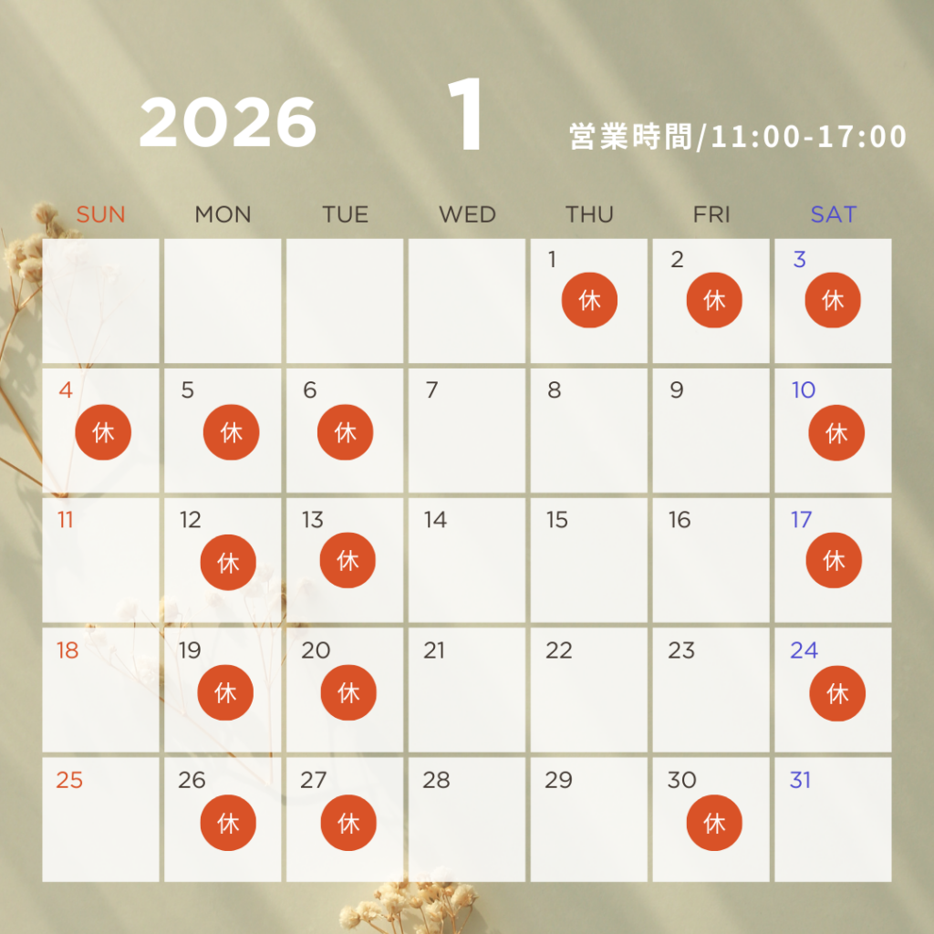 12月、1月の定休日のお知らせです。