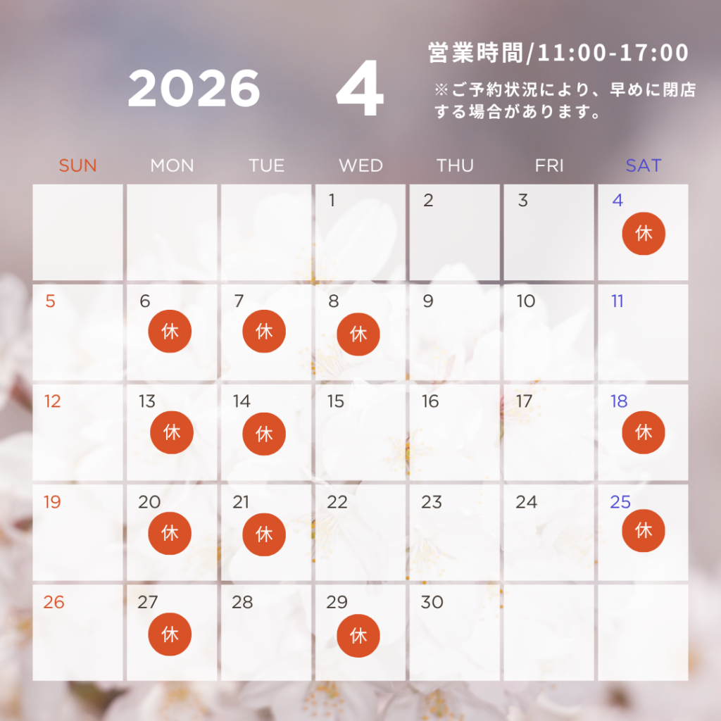 4月の定休日のお知らせ